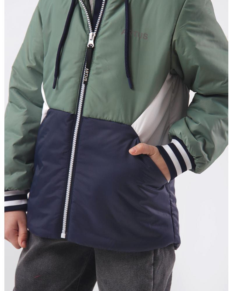 ОсобенностиКуртка для мальчика дошкольной группы, утепленная. На переде по борту и переднему краю капюшона разъемная застежка-молния с ветрозащитной планкой, цельнокроенной с уголком молнии. На планку настрочена тесьма. Перед разрезной, из 3-х частей. В швах стачивания нижних и боковых частей переда обработан карман. По входам в карманы установлены закрепки. На верхнюю левую часть переда нанесена печать. Спинка разрезная, из 3-х частей. Рукава втачные, одношовные, с притачными трикотажными манжетами. Капюшон двухшовный, втачной, с уступами. Верхний капюшон с передними отрезными частями. В шов притачивания передних отрезных частей к верхнему капюшону вставлены шлевки. По лицевому вырезу капюшон стягивается шнуром, который протягивается через люверсы и шлевки. Бережная стирка при температуре 30 С.