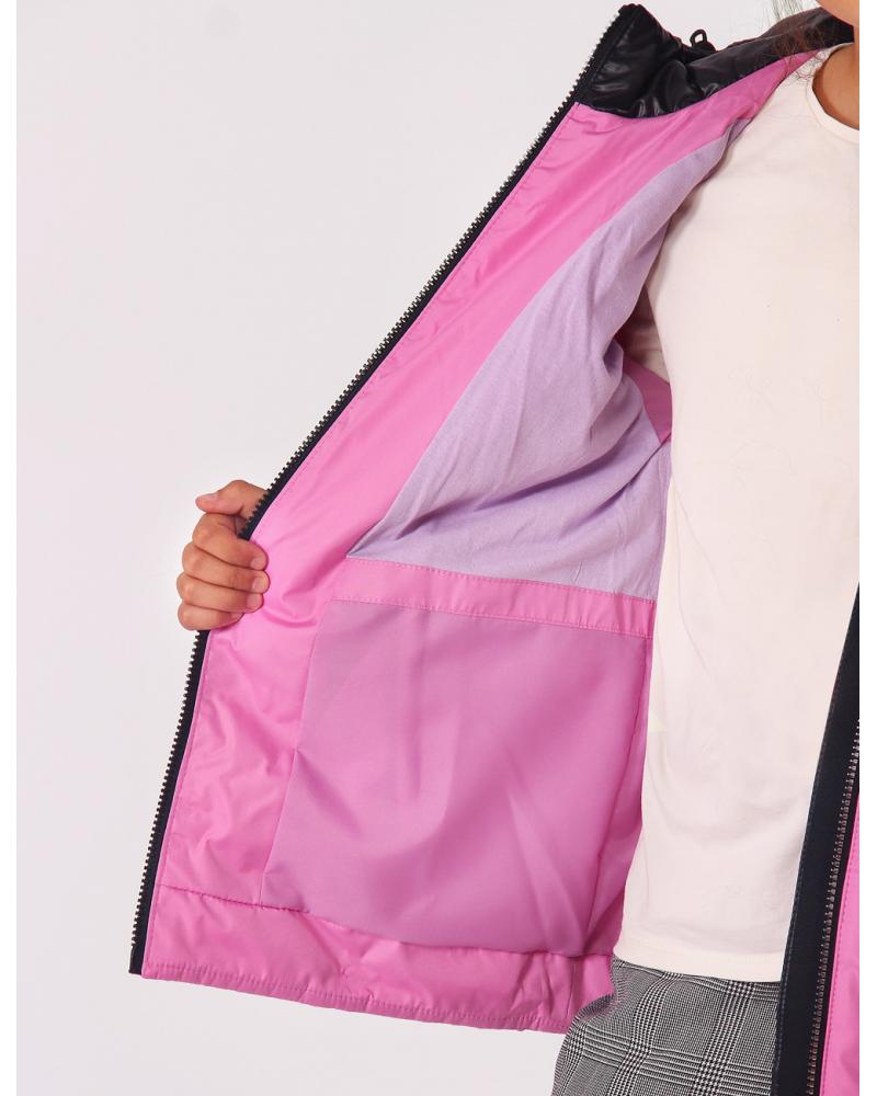 Особенности | Куртка для девочки младшего школьного возраста, утеплённая. На переде по борту и переднему краю капюшона разъемная застежка- молния, с ветрозащитной планкой. На планку настрочена тесьма. На переде два прорезных кармана, застегивающиеся на магниты. На левый перед настрочена эмблема. Рукава с притачными манжетами, стянутыми эластичной лентой. На рукава настрочена тесьма. Капюшон втачной, выполнен из отделочной ткани. Лицевой вырез капюшона стягивается шнуром, На среднюю часть капюшона нанесена световозвращающая печать. Рекомендованный температурный режим от +10 С до +2 С. Бережная стирка при температуре 30 С. |