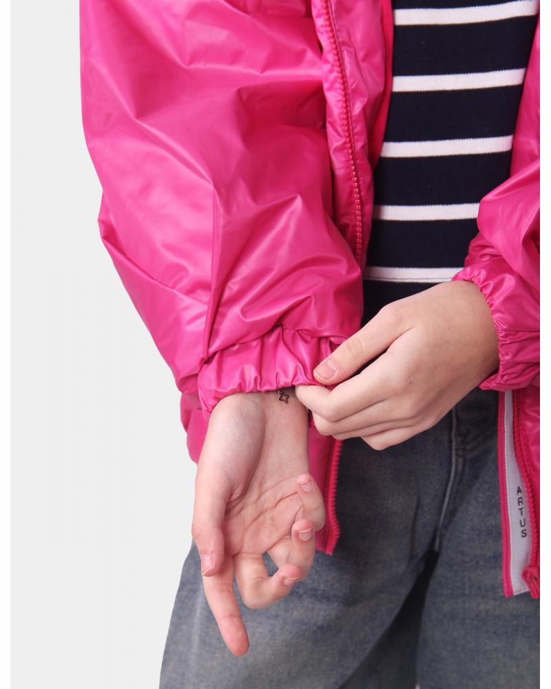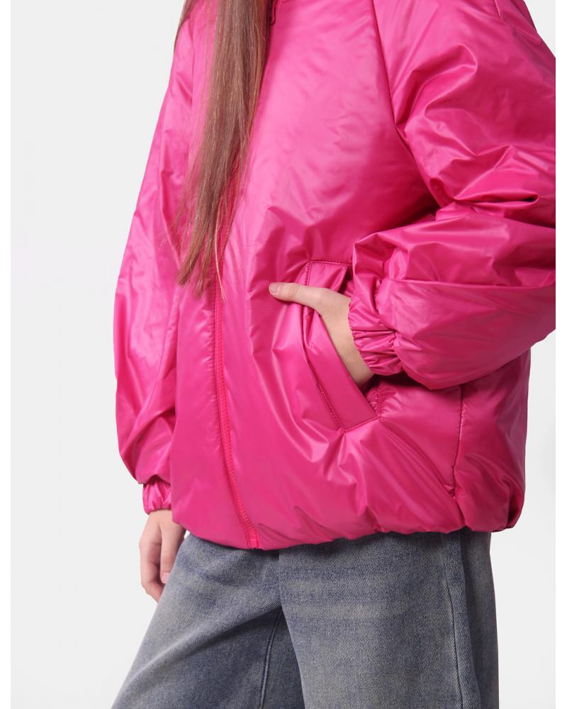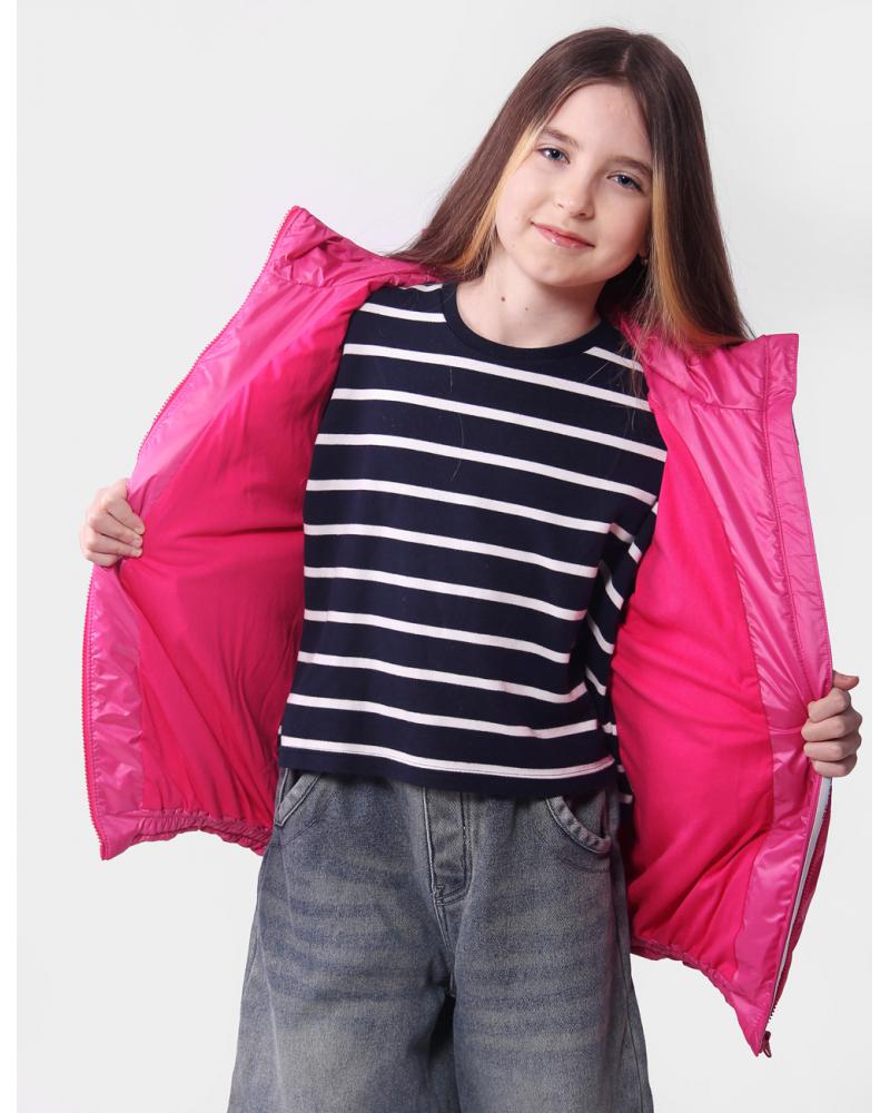 Особенности | Куртка для девочки младшей школьной группы, утепленная. На переде по борту, переднему краю капюшона разъемная застежка-молния с ветрозащитной планкой, цельнокроеной с уголком молнии. На переде обработаны прорезные карманы с листочками с втачными концами. По входам в карманы установлены спец. закрепки. Рукава реглан, одношовные, с притачными манжетами, стянутыми на эластичную ленту. В верхней части рукава обработана вытачка. По низу рукавов собрана сборка и заложены встречные складки. Капюшон двухшовный, втачной, с уступами. На среднюю часть верхнего капюшона нанесена световозвращающая печать. |