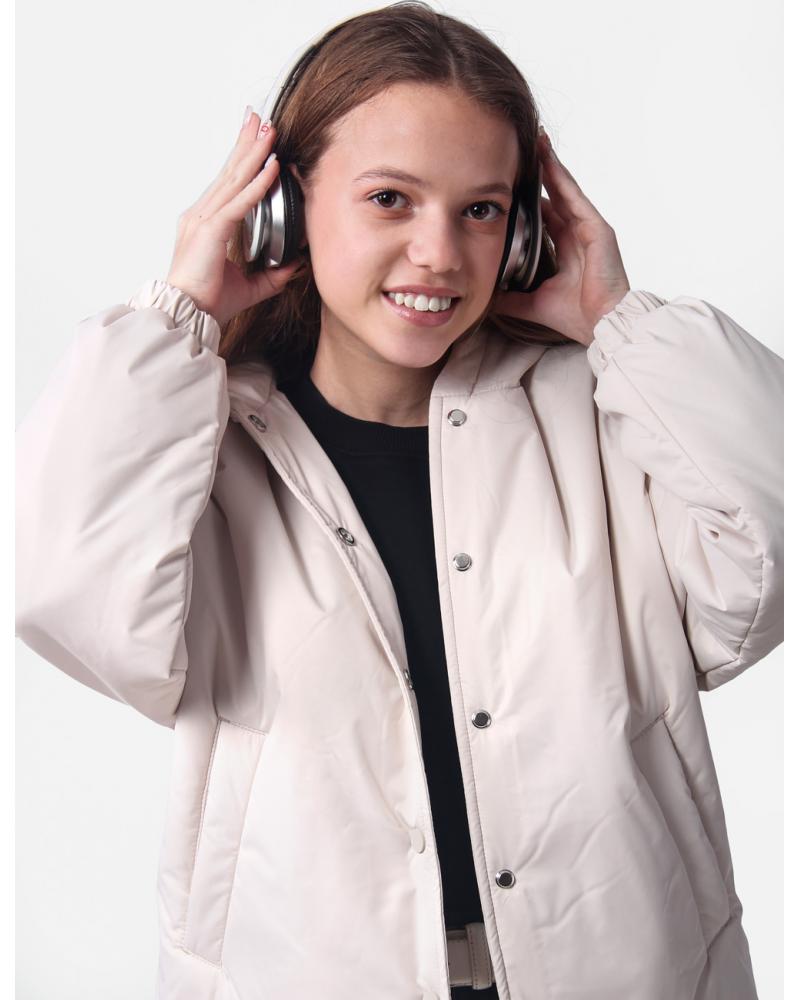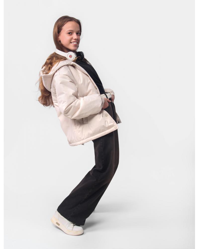 Особенности | Куртка для девочки старшей школьной группы, утепленная. Куртка со спущенной линией проймы. Перед однобортный, который застегивается на шесть кнопок по борту. На переде обработаны прорезные карманы с листочками с втачными концами, которые застегиваются на магниты. По входам в карманы установлены спец. закрепки. Рукава втачные, одношовные, с притачными манжетами, стянутыми эластичной лентой. Капюшон двухшовный, втачной. На левую боковую часть верхнего капюшона нанесена печать. Низ изделия обтачной, стягивается эластичным шнуром, который протягивается через блочки, фиксируется фиксаторами. |