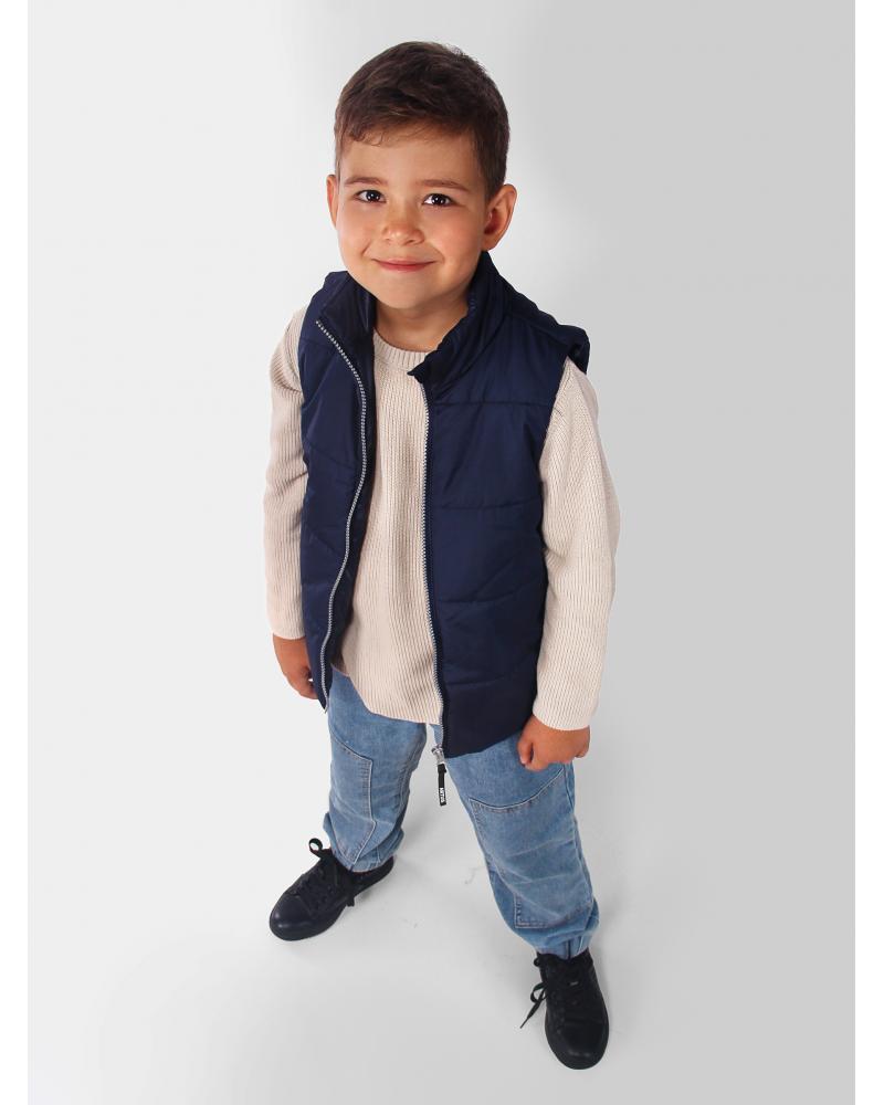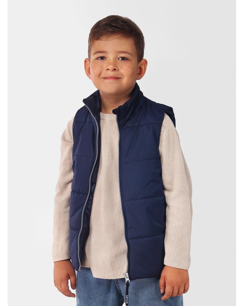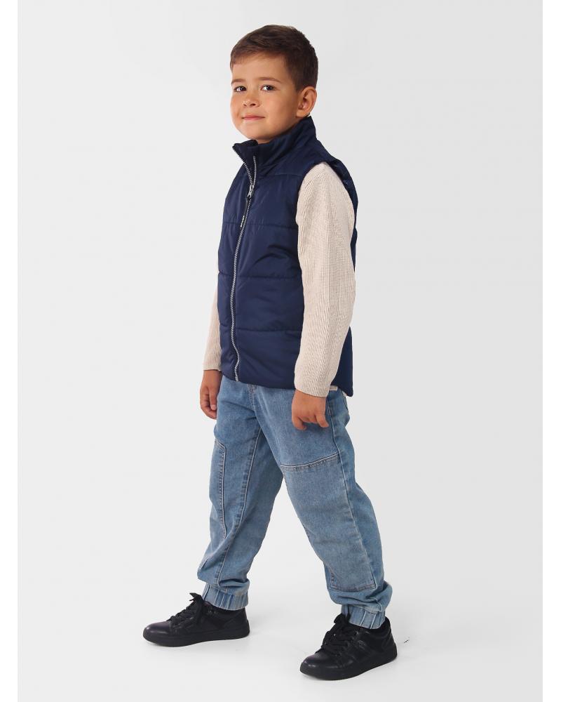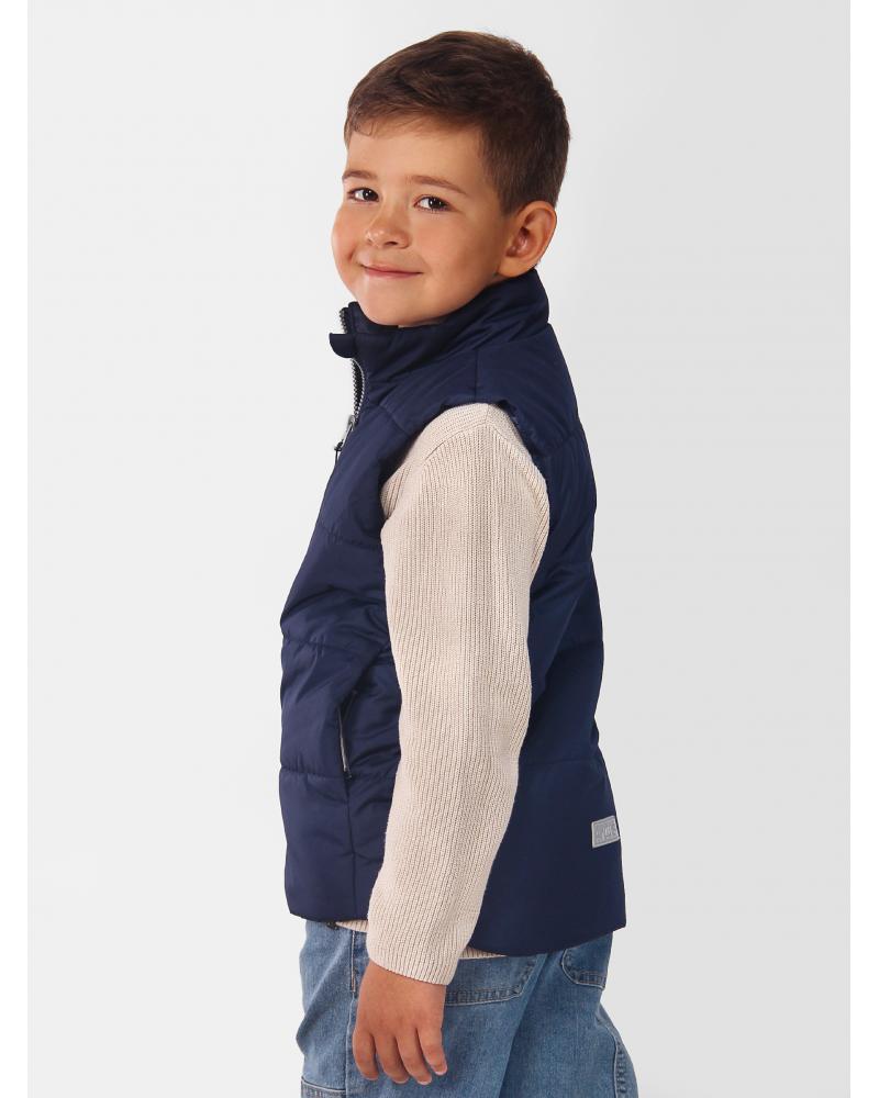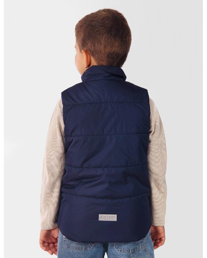 Особенности | Жилет для мальчика дошкольной группы, утепленная. На переде по борту и переднему краю воротника-стойки разъемная застежка-молния с уголком молнии. Замок молнии с навесным курсором. Перед с рельефами. По переду проложены строчки-стежки. В швах стачивания рельефов переда обработаны карманы. По входам в карманы установлены закрепки. Спинка цельнокроеная с бочками переда, по ней проложены строчки-стёжки. На спинку, внизу, настрочен световозвращающий шеврон. Воротник – стойка. Проймы и низ изделия обтачные. Бережная стирка при температуре 30 С. |
