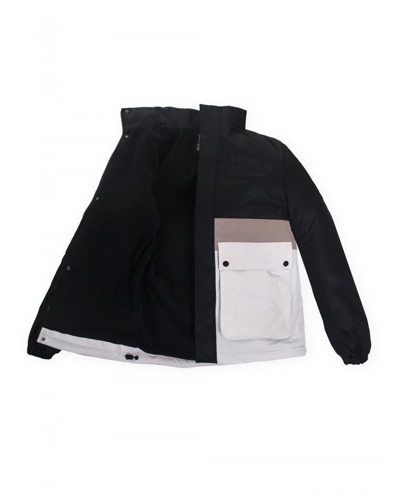 ОсобенностиКуртка для мальчика подростковой группы, неутепленная, на флисовой подкладке. На переде по борту и концам воротника разъемная застежка-молния с настрочной планкой, застёгивающаяся на пять потайных кнопок. Перед разрезной из 3-х частей. На левой верхней части переда нанесена печать. На нижних частях переда обработаны накладные карманы - «портфели» с боковым входом, застёгивающиеся на магнит и клапанами, застегивающимися на кнопки. Спинка разрезная из 3-х частей. Рукава с притачными манжетами, стянутыми на эластичную ленту. Воротник-стойка, обтачная по отлёту, с отверстием по горловине для вкладывания капюшона и застёгивающаяся на 3 кнопки. Капюшон двухшовный, втачной. Низ изделия обтачной, фигурной формы, стягивается эластичным шнуром, который протягивается через блочки, фиксируется фиксаторами. Бережная стирка при температуре 30 С.