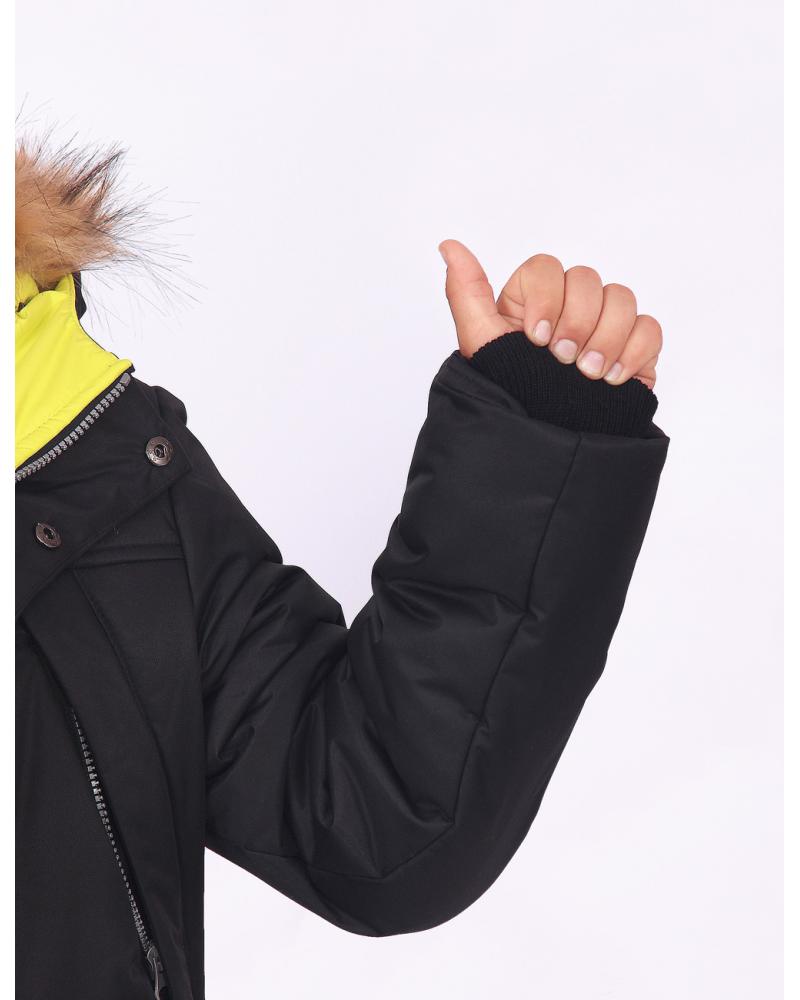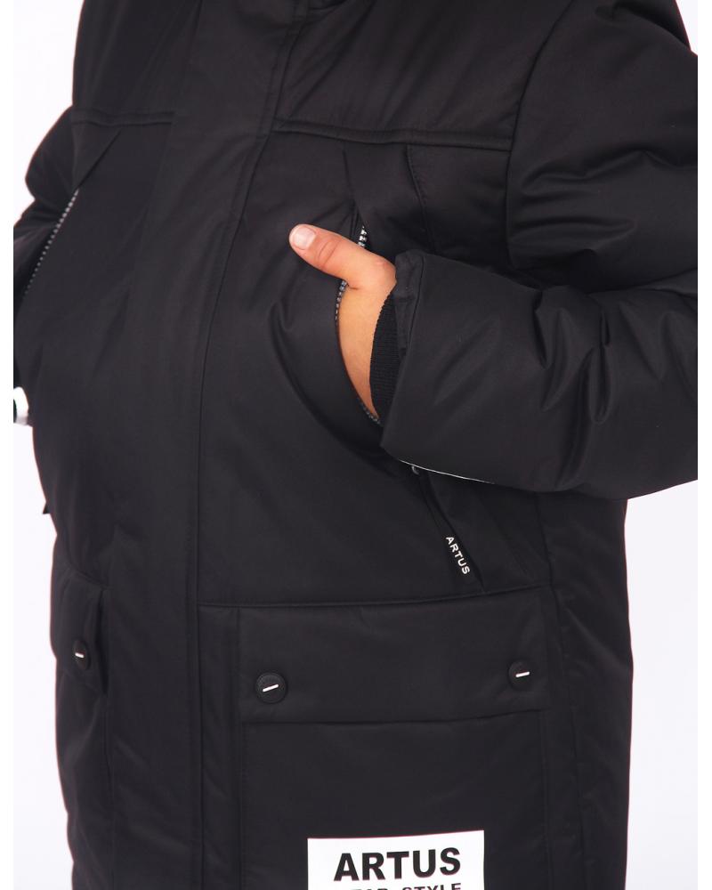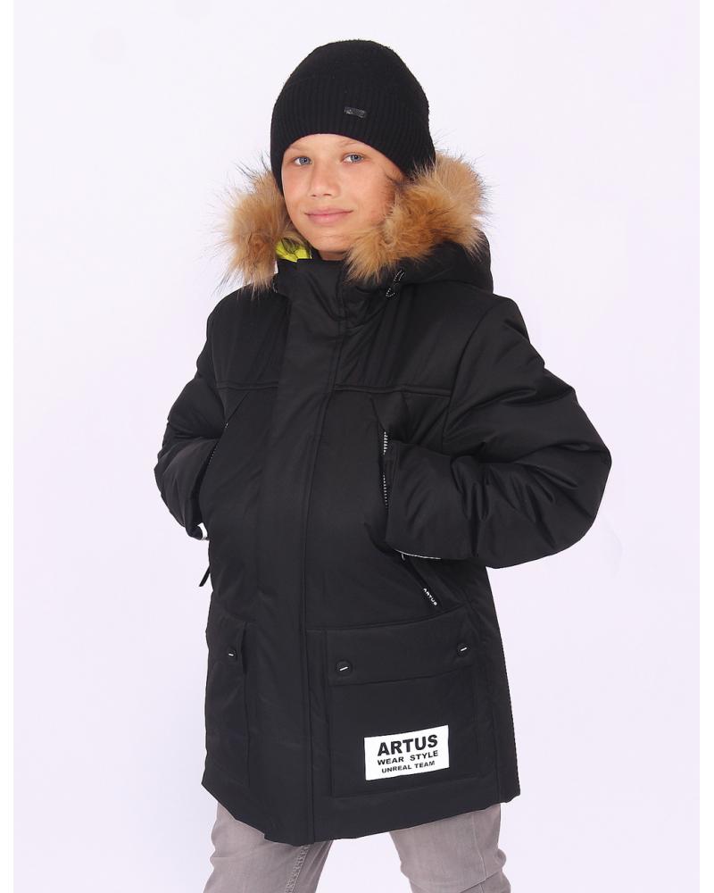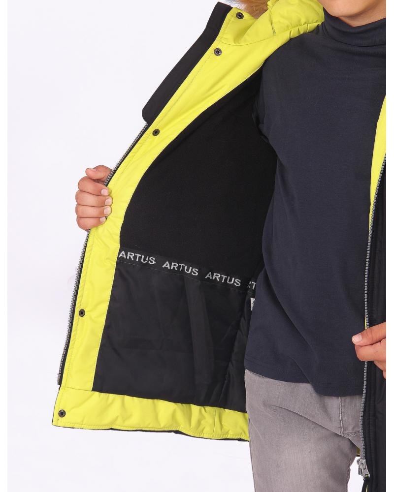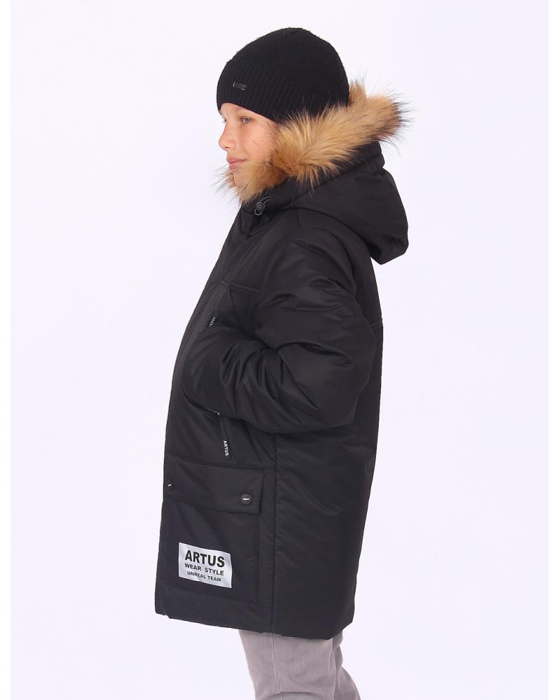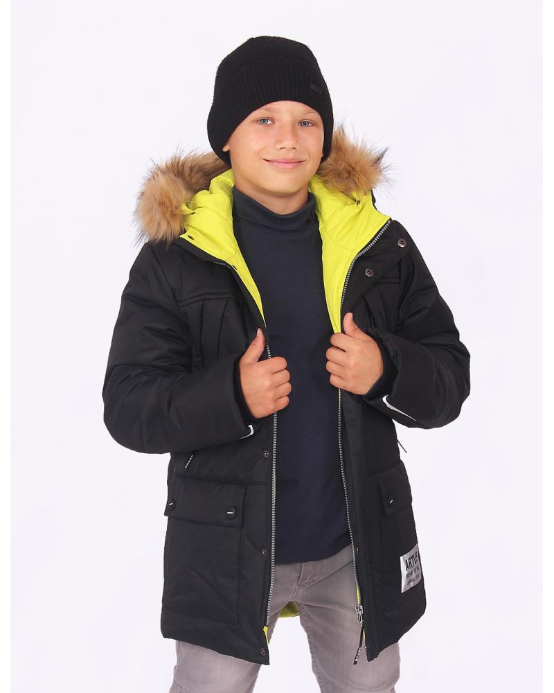 Особенности | Куртка для мальчика младшей школьной группы, утепленная, на флисе. На переде по борту и переднему краю капюшона разъемная застежка-молния с короткой ветрозащитной планкой, застегивающейся на шесть потайных кнопок. На верхней части переда обработаны боковые карманы с листочками и застежкой – молнией. На нижних частях переда обработаны накладные карманы с клапанами, застегивающимися на кнопки. На левый накладной карман нанесена печать. Спинка с кокеткой. На кокетку спинки нанесена печать. Рукава втачные, с трикотажными напульсниками. В шов стачивания локтевых швов вставлена световозвращающая тесьма. Капюшон двухшовный, с уступами. По лицевому вырезу стянут эластичным шнуром. По лицевому вырезу капюшона на застежку-молнию пристегивается опушка из искусственного меха. На средней части капюшона выполнена световозвращающая печать. Низ фигурной формы, обтачной. Подкладка переда и спинки из 2-х частей. Верхние части подкладки переда и спинки из флиса. Вешалка из тесьмы.