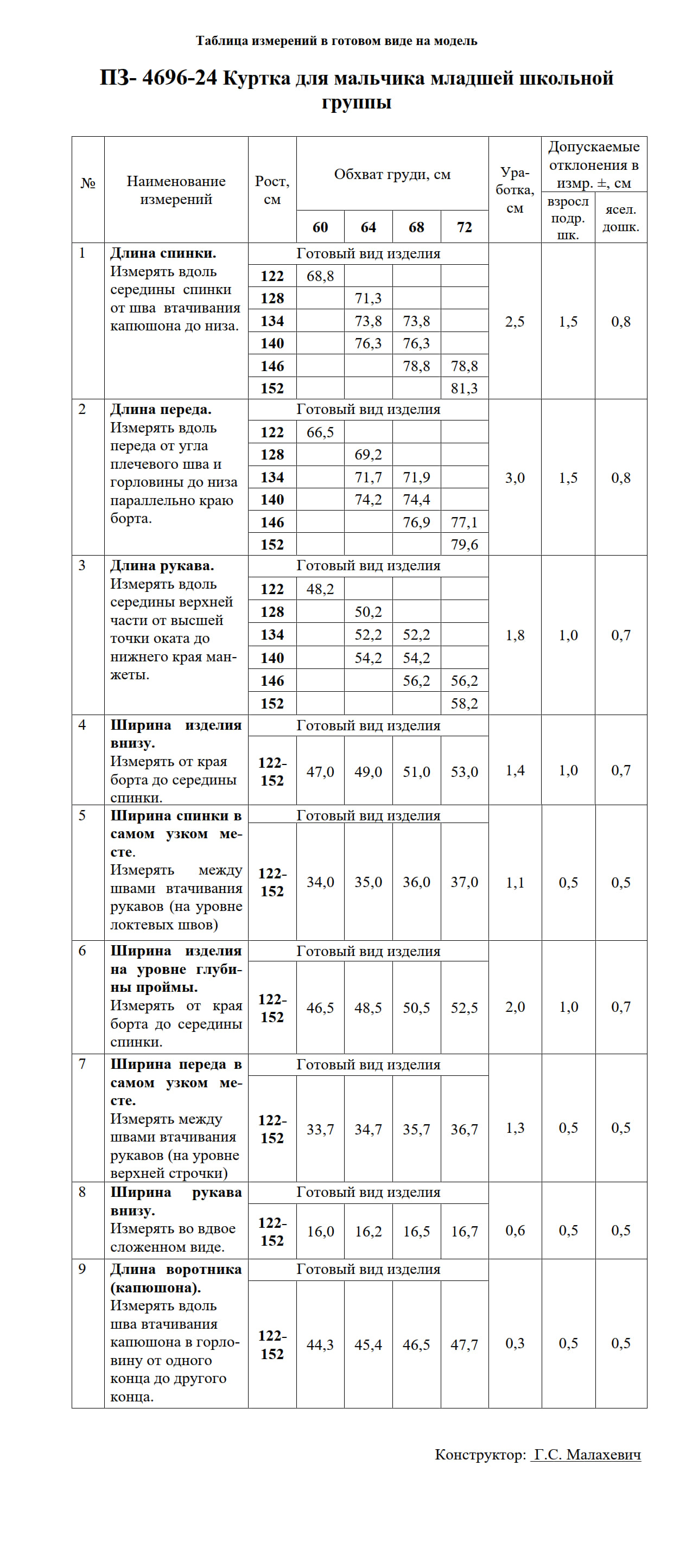 Особенности | Куртка для мальчика младшей школьной группы, утепленная. На переде по борту и переднему краю капюшона разъемная застежка-молния с короткой ветрозащитной планкой, цельнокроенной с уголком молнии и настрочной планкой, застегивающейся на шесть потайных кнопок. Перед разрезной, из 3-х частей, с притачными кокетками. На средней части переда обработаны карманы с застежкой-молнией. Замки молний карманов с курсорами. На левую кокетку переда нанесена печать. Спинка цельнокроеная. По боковым швам, внизу, вставлена световозвращающая тесьма. Рукава втачные, двухшовные, с трикотажными напульсниками. Капюшон двухшовный, втачной, с уступами. Лицевой вырез капюшона стягивается шнуром, который продевается через блочки и фиксируется фиксаторами. Вешалка из тесьмы. По подкладке переда, спинки и рукавов проложены строчки-стежки. Бережная стирка при температуре 30 С. |