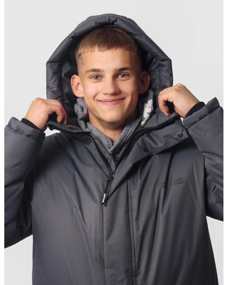 Особенности | Куртка для мальчика старшей школьной группы, утепленная. На переде по борту и переднему краю капюшона разъемная застежка-молния с короткой ветрозащитной планкой, цельнокроенной с уголком молнии и настрочной планкой, застегивающейся на семь кнопок. На переде обработаны прорезные карманы с листочками с втачными концами. По входам в карманы установлены спец. закрепки. На левый перед нанесена печать. В шов обтачивания отлетного края верхней части спинки, на участке, вставлена световозвращающая тесьма. Рукава втачные, двухшовные с трикотажными напульсниками. На верхние части рукавов, по низу, настрочены паты, которые застегиваются на контактную ленту «велкро». Капюшон двухшовный, втачной, с уступами и отрезной лицевой частью. Лицевой вырез капюшона стягивается шнуром, который продевается через блочки, фиксируется фиксаторами. Боковые части верхнего капюшона с притачными вставками. В шве притачивания вставки к боковым частям верхнего капюшона обработан «карман», в котором расположены шнур капюшона с фиксаторами.