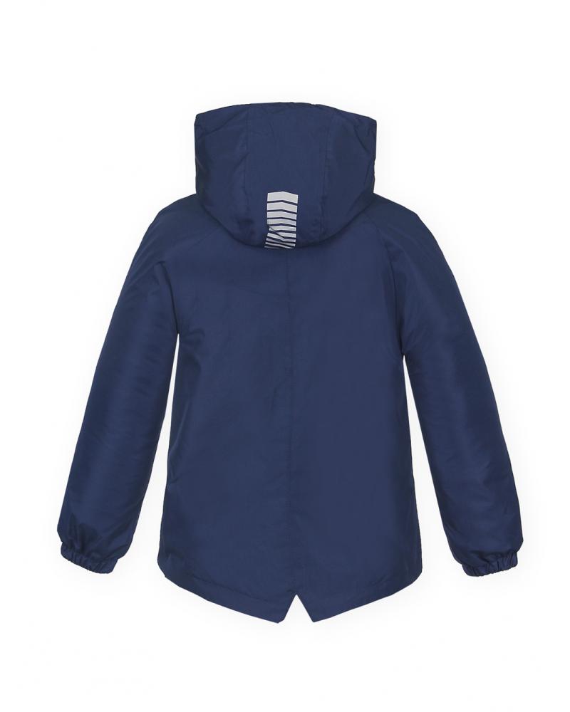 Особенности | Куртка для мальчика ясельной группы, неутепленная. На переде по борту и переднему краю капюшона разъемная застежка-молния с ветрозащитной планкой, цельнокроеной с уголком молнии. На планку настрочена тесьма. Перед цельнокроеный. На переде обработаны прорезные карманы. На левый перед нанесена печать. Рукава покроя «реглан», с притачными манжетами, стянутыми эластичной лентой. Капюшон втачной. Лицевой вырез капюшона стягивается шнуром. На средней части капюшона выполнена световозвращающая печать. Бережная стирка при температуре 30 С. |