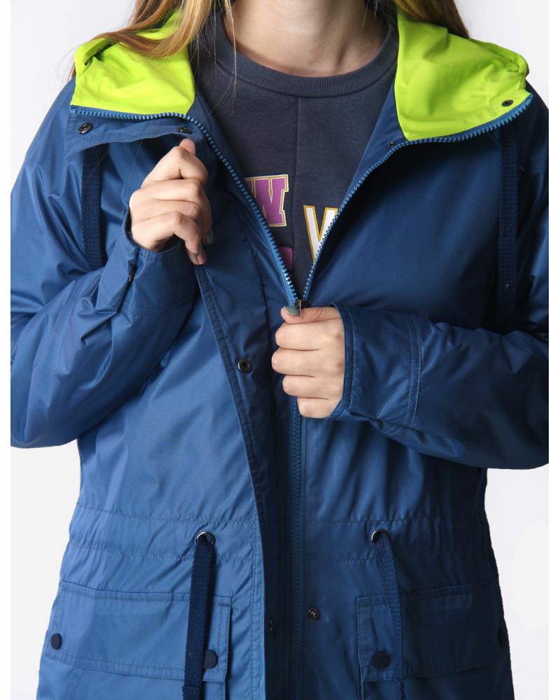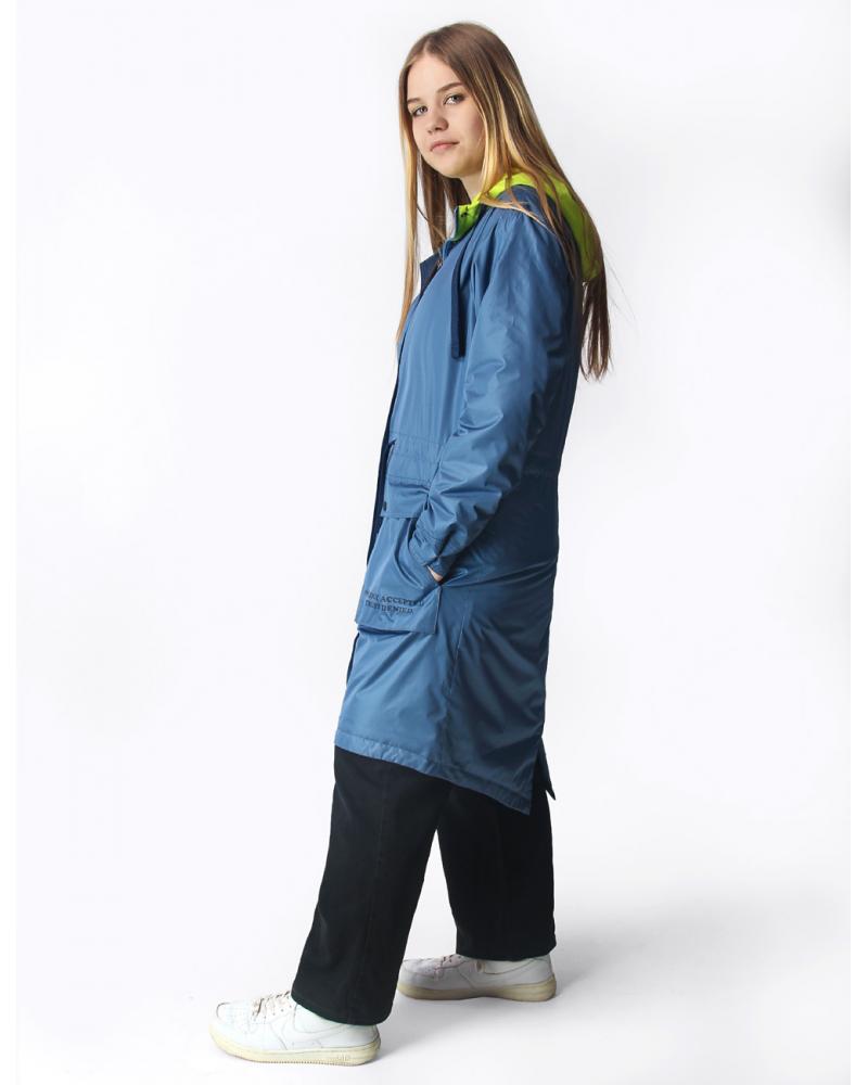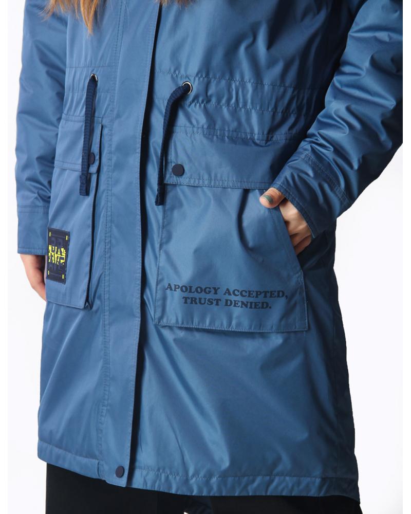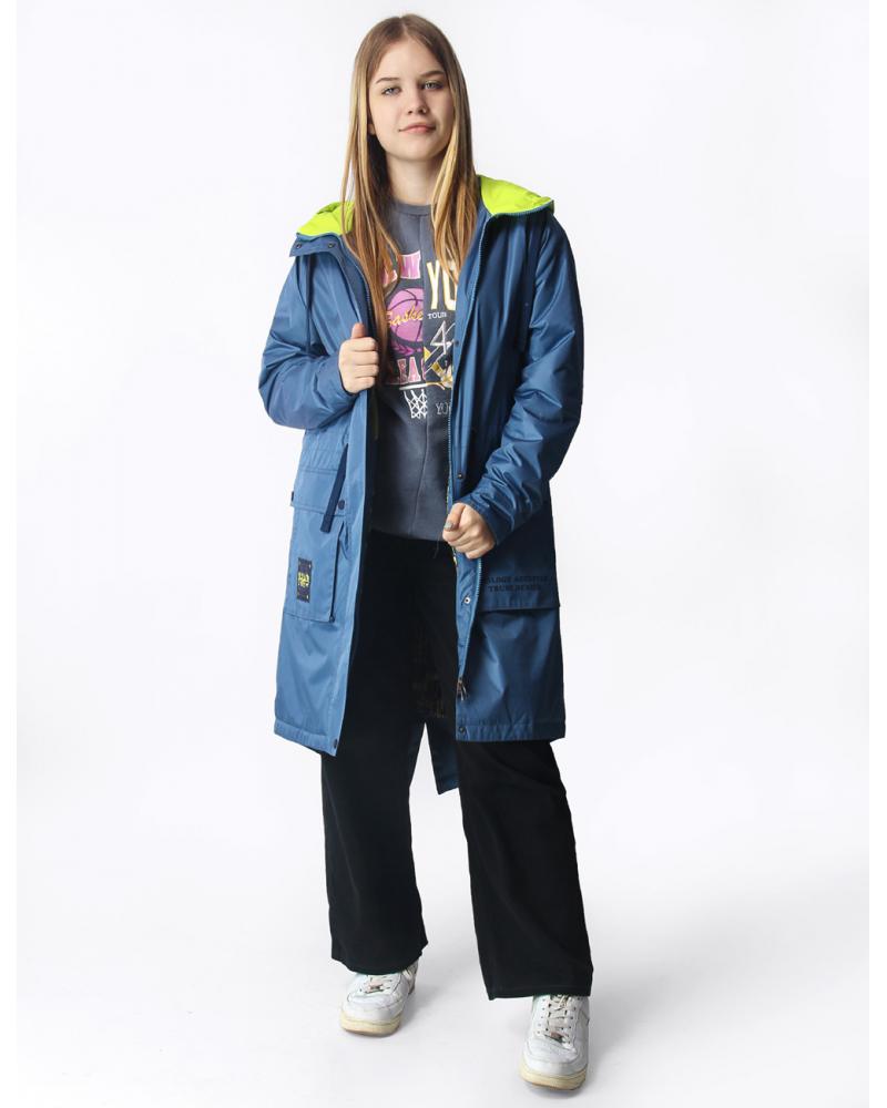 ОсобенностиКуртка для девочки подростковой группы, неутепленная, на флисовой подкладке. На переде по борту и переднему краю капюшона центральная разъемная застежка-молния с настроченной планкой, застегивающейся на шесть кнопок, из них 3 потайные. На переде обработаны накладные карманы- «портфели» с боковым входом и клапанами, застегивающимися на кнопки. На левый карман нанесена печать, на правый настрочен шеврон. По талии обработана кулиска, которая стягивается шнуром, и продевается через люверсы на переде. Рукава с притачными манжетами, застегивающимися на кнопки. На левый рукав настрочен шеврон. Капюшон – втачной. По лицевому вырезу стягивается шнуром, и протягивается через люверсы. На среднюю часть верхнего капюшона нанесена печать. Низ изделия обтачной, фигурной формы. Вешалка из тесьмы. Бережная стирка при температуре 30 С.