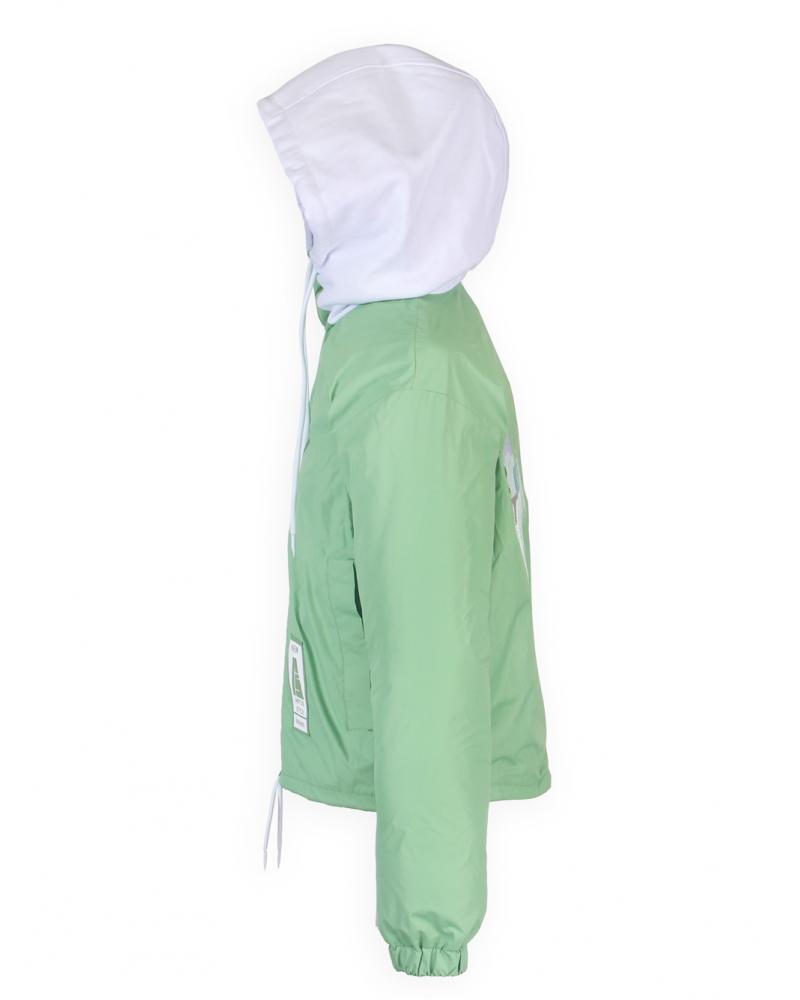 ОсобенностиКуртка для девочки старшей школьной группы, неутепленная. Куртка со спущенной линией проймы. На переде по борту и переднему краю капюшона разъемная застежка- молния, с ветрозащитной планкой. На планку настрочена тесьма. На переде обработаны прорезные карманы с листочками с втачными концами, застегивающимися на магниты. На левый перед настрочен шеврон. На спинке выполнена вышивка. Рукава с притачными манжетами, стянутыми на эластичную ленту. Капюшон втачной. Боковые части верхнего капюшона с притачными вставками. По лицевому вырезу стягивается шнуром. Низ изделия обтачной. В шов обтачивания низа вставлена кулиска, которая стягивается шнуром. Вешалка из тесьмы. Бережная стирка при температуре 30 С.