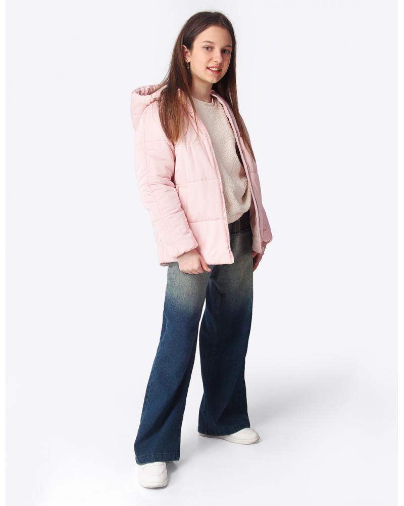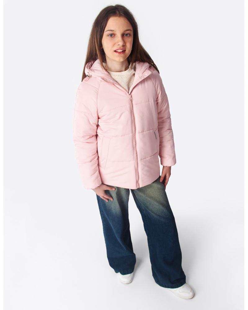 ОсобенностиКуртка для девочки младшей школьной группы, утепленная. На переде по борту, переднему краю капюшона разъемная застежка-молния с ветрозащитной планкой, цельнокроенной с уголком молнии. На планку настрочена тесьма. Замок молнии с навесным курсором. По переду проложены строчки-стежки. По входам в карманы установлены спец. закрепки. В шов притачивания листочки к левому переду, в верхнем углу, вставлена световозвращающая тесьма. Рукава реглан, двухшовные. По частям рукавов проложены строчки-стежки. Низ рукава стягивается эластичной лентой. Капюшон двухшовный, втачной, с отрезной передней частью и уступами. Средняя часть верхнего капюшона из 2-х частей. В шов стачивания средней части верхнего капюшона вставлена световозвращающая тесьма. Низ изделия обтачной, фигурной формы, стягивается эластичным шнуром, который протягивается через блочки и петли, фиксируется фиксаторами.