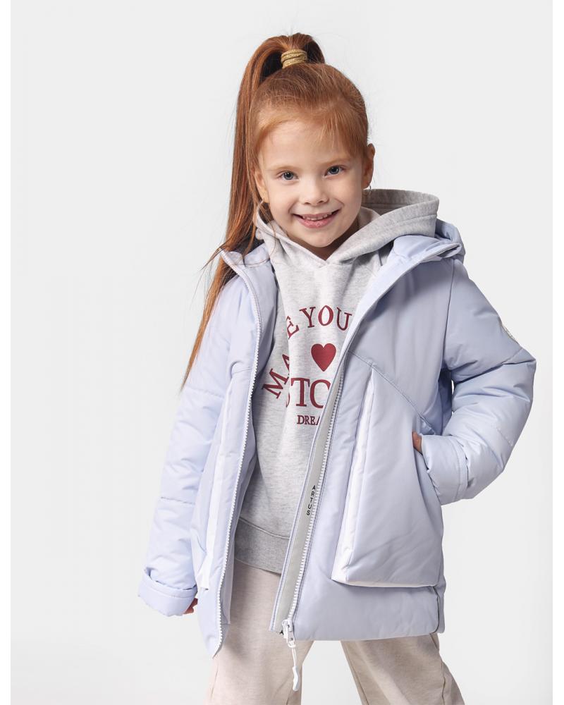 Особенности | Куртка для девочки дошкольной группы, утепленная. На переде по борту, переднему краю капюшона разъемная застежка-молния с ветрозащитной планкой, цельнокроеной с уголком молнии. На планку настрочена тесьма. Замок молнии с навесным курсором. На нижних частях переда обработаны накладные карманы - «портфели». По боковым швам, внизу, вставлена световозвращающая тесьма (до кармана). Рукава втачные, одношовные, с отворотами. Низ рукава обтачной. По рукавам проложены строчки-стежки. На левый рукав настрочен шеврон. Капюшон втачной, двухшовный, с уступами.