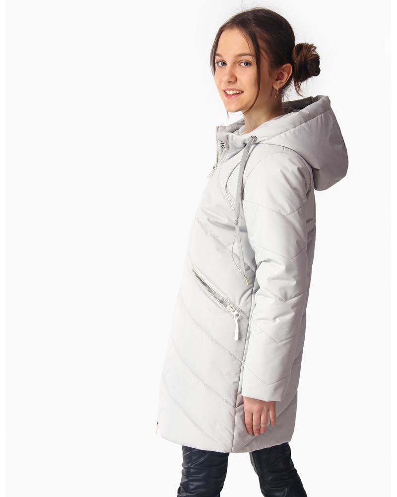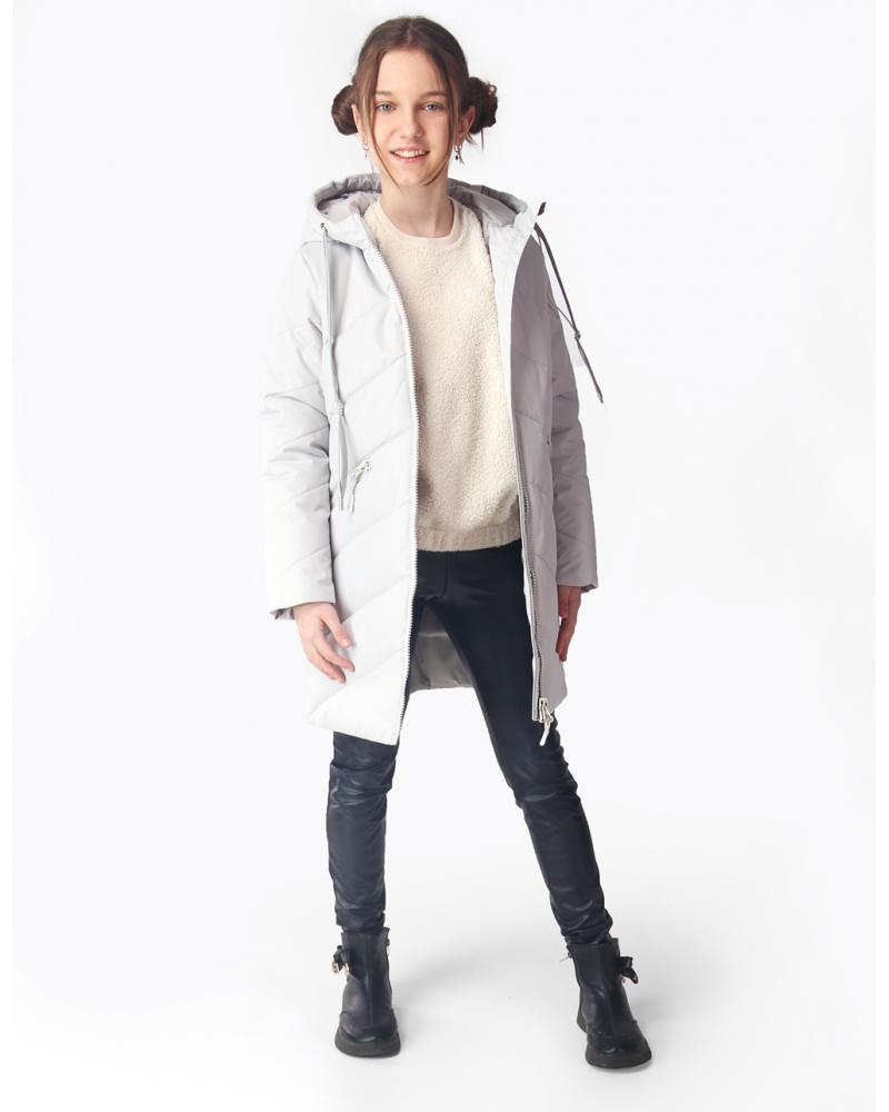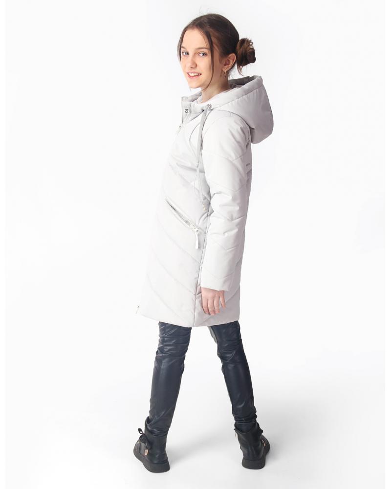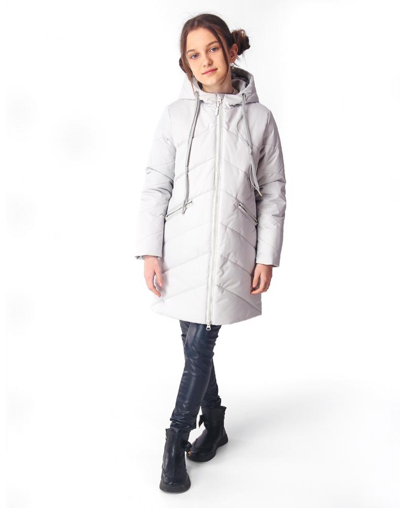 Особенности | Пальто для девочки младшей школьной группы, утепленное. На переде по борту, переднему краю капюшона разъемная застежка-молния с ветрозащитной планкой, цельнокроеной с уголком молнии.