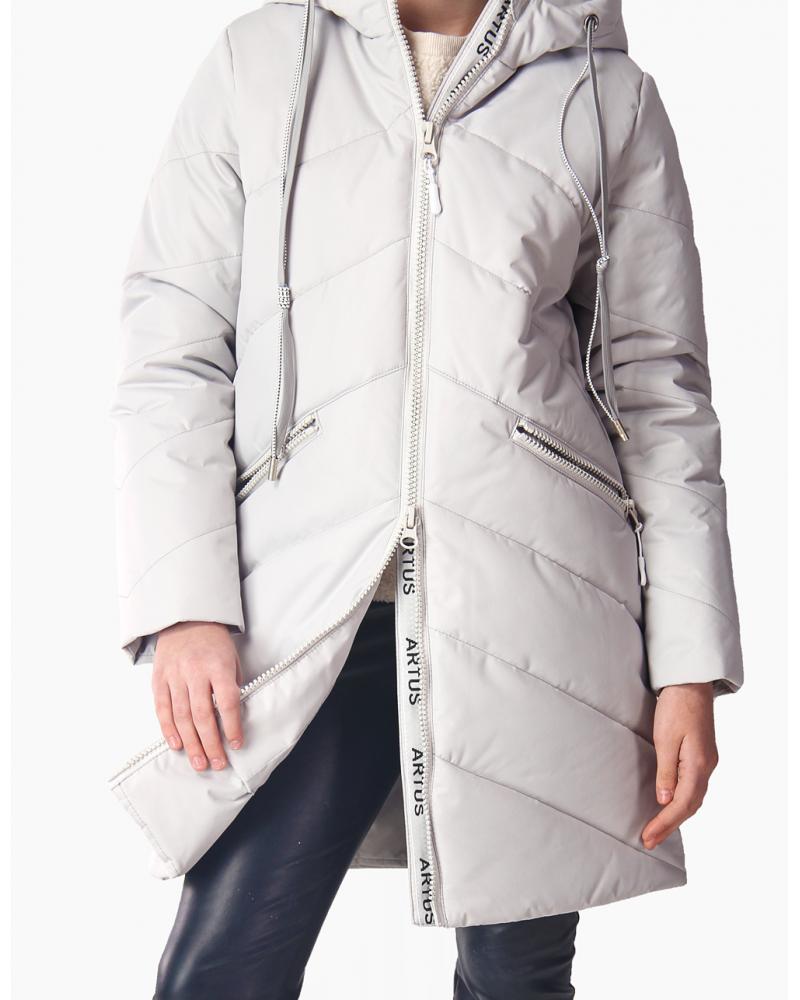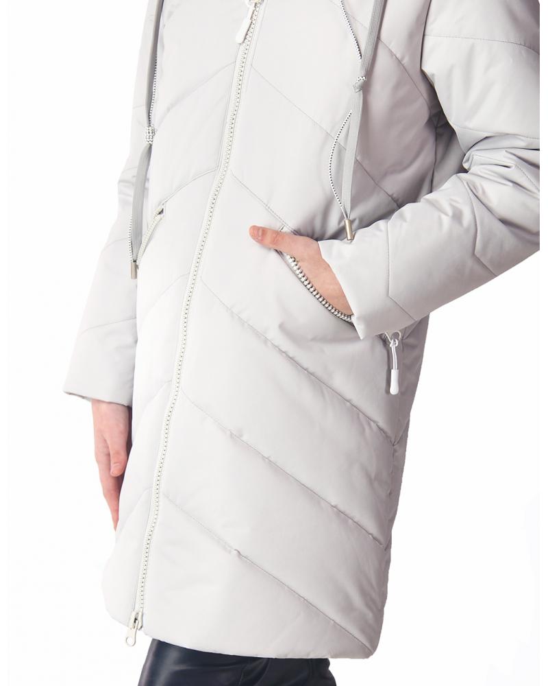 Перед разрезной, из 2-х частей. По верхним и нижним частям переда проложены строчки-стежки. В швах стачивания нижних и верхних частей переда обработаны карманы с застежкой-молнией. Спинка со средним швом. Рукава втачные, одношовные. По рукавам проложены строчки-стежки. Капюшон двухшовный, втачной, с уступами. Лицевой вырез капюшона стягивается шнуром, который продевается через люверсы. На среднюю часть верхнего капюшона нанесена световозвращающая печать.
