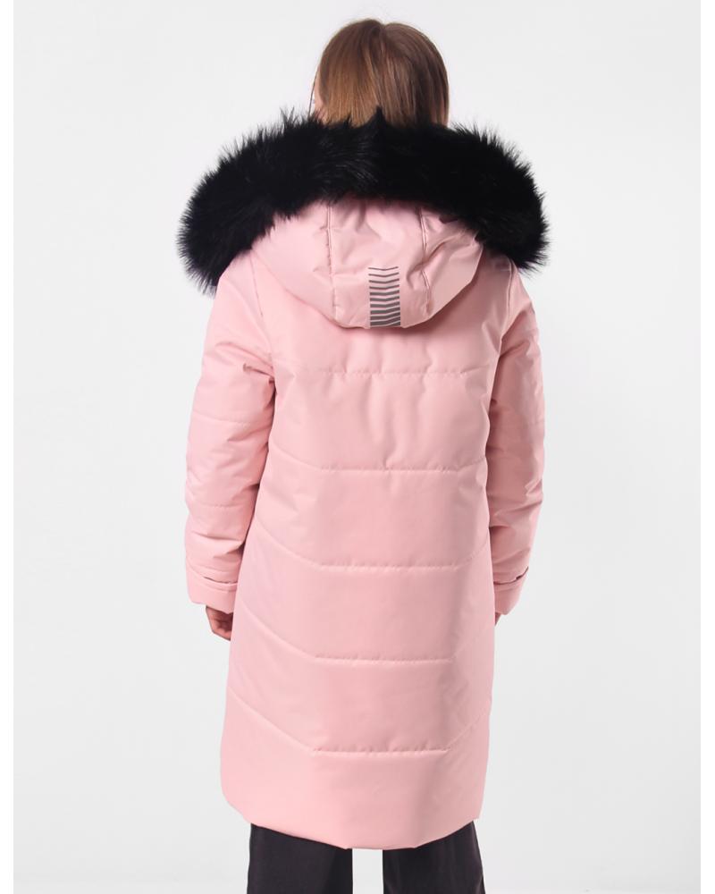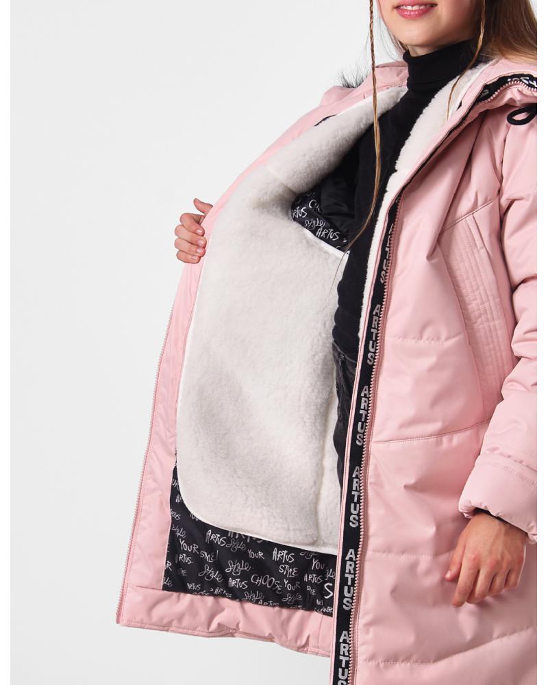 ОсобенностиЭто утепленное пальто с меховой подстежкой, идеально подходящее для холодной погоды. Передняя часть украшена бортиком и капюшоном с разъемной застежкой-молнией, ветрозащитной планкой, цельнокроенной с уголком, и на планке настрочена тесьма. Передняя часть разрезная из трех частей, с фигурными строчками-стежками на верхних и нижних частях. В швах стачивания расположены карманы с листочками и втачными концами, закрепки у входов в карманы и строчки-стежки по верхним листочкам. Спинка цельнокроеная с фигурными строчками-стежками. Рукава втачные, цельнокроеные, с отворотами и трикотажными напульсниками, проложены строчки-стежки, а на левом рукаве — шеврон. Капюшон двухшовный, втачной, с уступами и притачным отворотом по лицевому вырезу, который стягивается шнуром с люверсами. На капюшоне расположена опушка из искусственного меха, пристегивающаяся на застежку-молнию, пуговицы и навесные петли. Средняя часть верхнего капюшона украшена световозвращающей печатью. Низ изделия обтачной, фигурной формы. Перед и спинка подшиты строчками-стежками, рукава — из двух частей. Вешалка выполнена из тесьмы. Подстежка из меха пристегивается к пальто на две застежки-молнии и семь пуговиц, обеспечивая дополнительное тепло и комфорт.