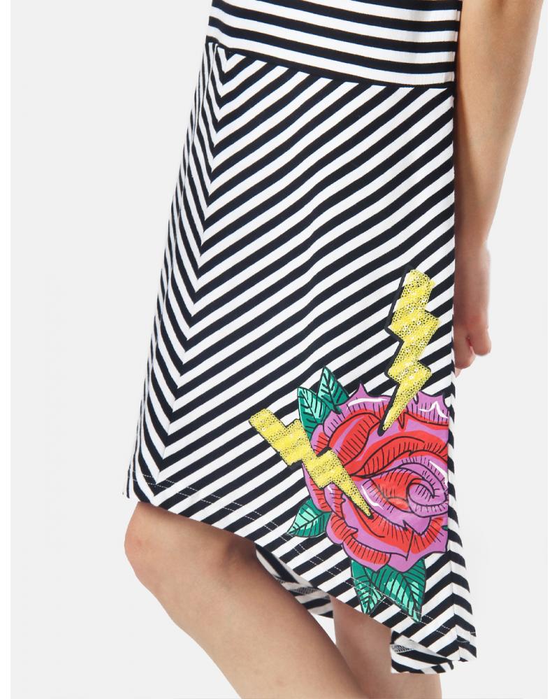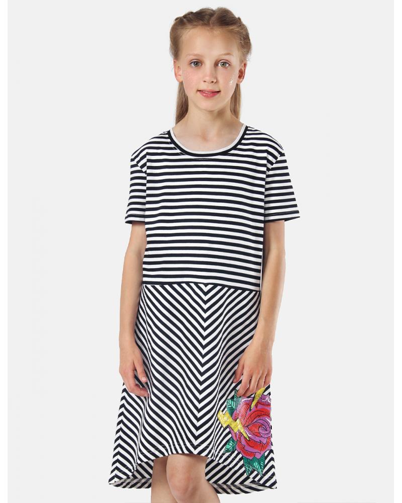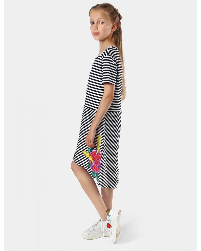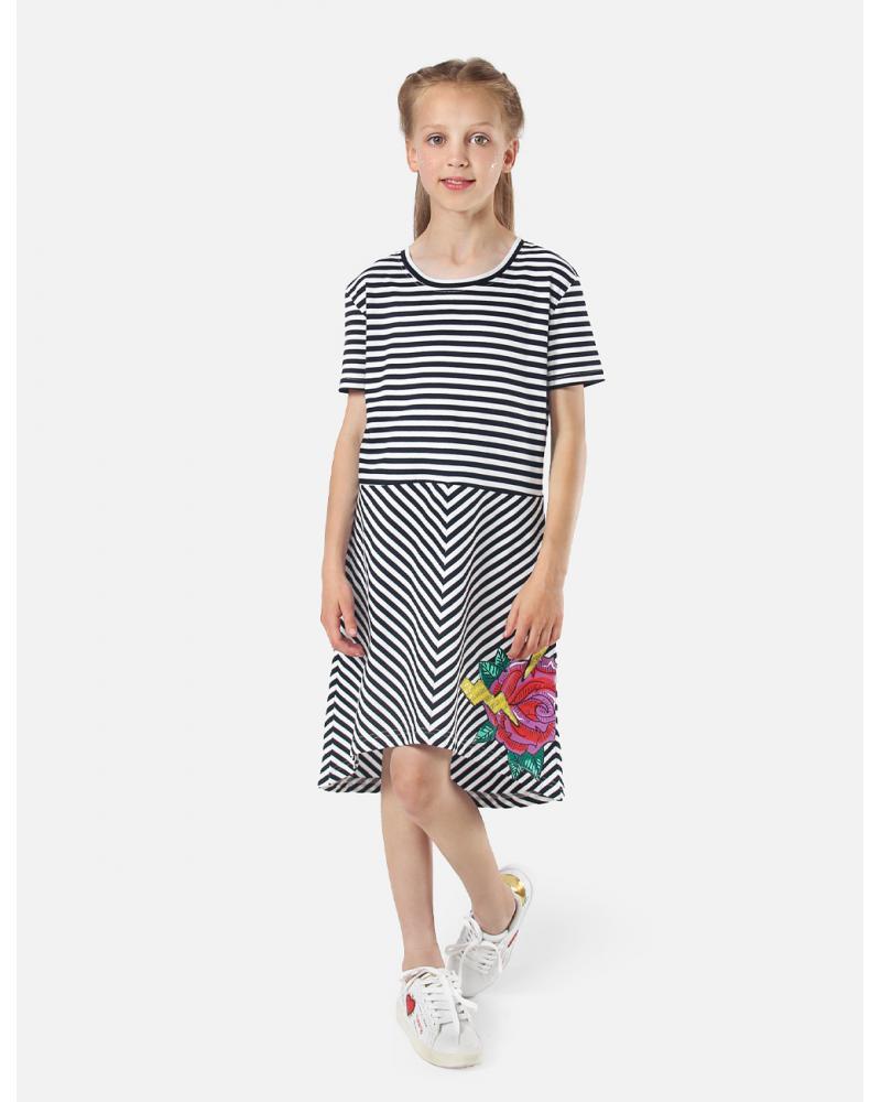 ОсобенностиПлатье в полоску для девочек европейского бренда Coccodrillo — это легкий и удобный предмет одежды, который обязательно привлечет внимание любителей утонченных принтов. Изготовлено из мягкого на ощупь хлопка премиального качества. Легкий, приятный телу трикотаж не теряет форму после стирки, надолго сохраняет изначальный цвет и вид. Подол спинки слегка удлинен и придает платью тонкий шарм. Новинка доставит удовольствие благодаря декору, выполненному в виде изысканного принта на мотив розы в сочетании с элементами в виде молний из пайеток. Тонкая и дышащая модель подарит ощущение свежести и комфорта вашему ребенку на целый день на прогулке или дома. Оригинальная модная вещь станет стильным акцентом в гардеробе маленькой леди. Эта красивая, цветная трикотажная одежда подойдет для девчонки в возрасте младшей школы и подростков. С ней можно создавать интересные и прикольные образы как для повседневной жизни, так и для особых случаев - например, для тематических вечеринок, танцев, утренников или необычной фотосессии. Универсальный милый наряд из хлопка подарит вашей малышке удобство и свободу движений. Легкий материал делает ее незаменимой для летнего отдыха. Необычное сочетание классического фасона и трендовых решений делает эту легкую модель идеальным выбором детей.