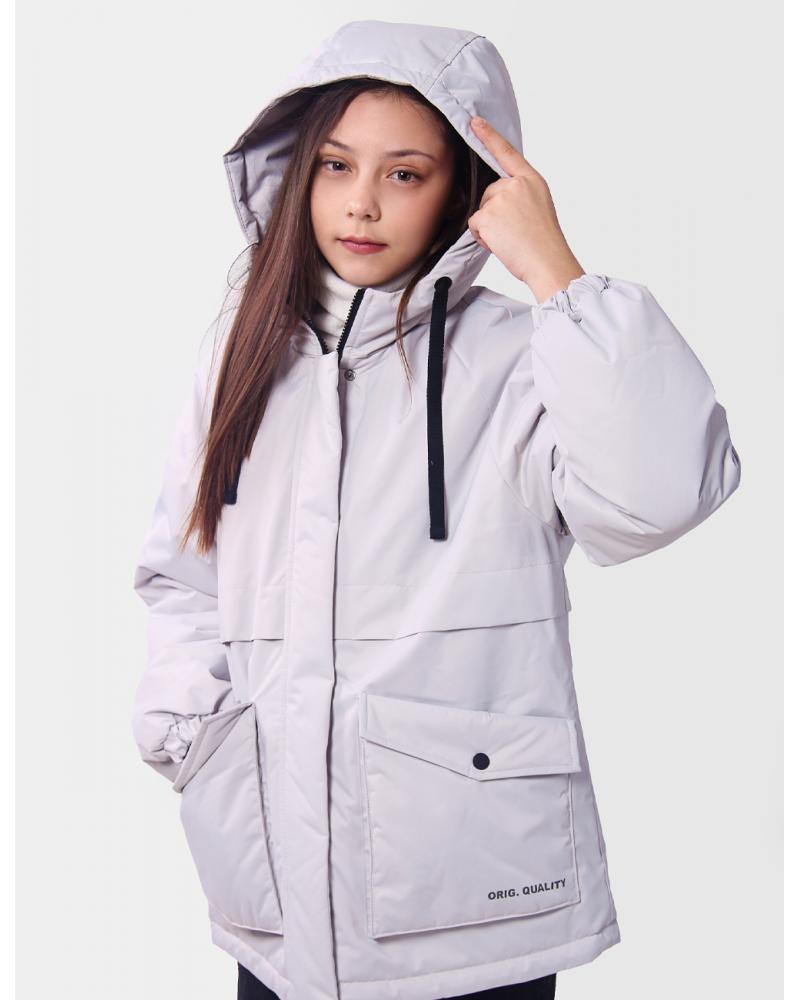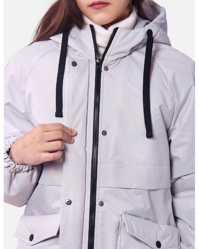 Особенности | Куртка для девочки старшей школьной группы, утепленная. На переде по борту и переднему краю капюшона разъемная застежка-молния и настрочной планкой, которая застегивается на потайные кнопки (5шт.). На нижних частях переда обработаны накладные карманы с цельнокроеными клапанами, которые застегиваются на кнопки. В швы обтачивания переднего и нижнего края карманов вставлена обтачка. По входу в карман и нижнему боковому углу установлены спец.закрепки. На левый накладной карман нанесена световозвращающая печать. Рукава реглан, одношовные, с притачными манжетами, стянутыми эластичной лентой. В верхней части рукава обработана вытачка. Капюшон двухшовный, втачной, с уступами. Лицевой вырез капюшона стягивается шнуром, который продевается через люверсы, фиксируется фиксаторами. |