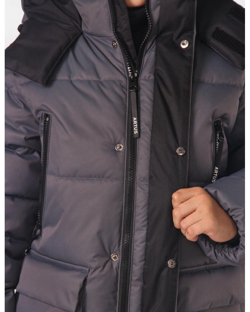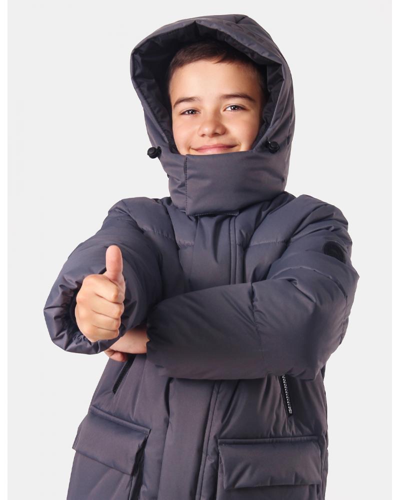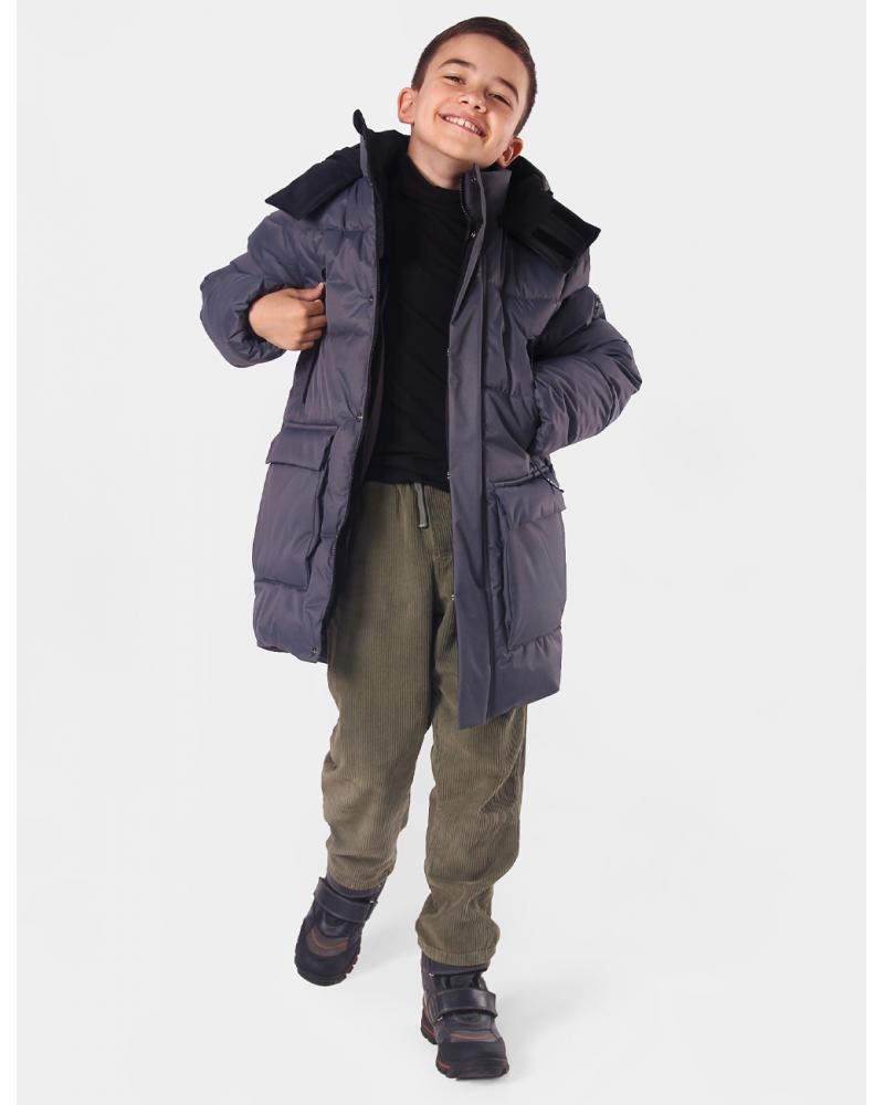 Особенности | Куртка для мальчика младшей школьной группы, утепленная. На переде по борту и переднему краю воротника разъемная застежка-молния с короткой ветрозащитной планкой, цельнокроенной с уголком молнии и настрочной планкой, застегивающейся на шесть потайных кнопок. По переду проложены строчки-стежки. На переде обработаны верхние прорезные карманы с застежкой-молнией и нижние накладные карманы с настрочными клапанами, которые застегиваются на четыре потайные кнопки. По концам строчек настрачивания клапанов, по входам в накладные карманы и нижним углам карманов установлены спец.закрепки. Замки молний верхних карманов с курсорами. По боковым швам, внизу, вставлена световозвращающая тесьма (по надсечкам). Рукава втачные, одношовные, с трикотажными напульсниками. По рукавам проложены строчки-стежки. По низу рукава стянуты эластичной лентой. На левый рукав настрочен шеврон. Воротник-стойка. Капюшон двухшовный, втачной, с уступами, которые застегиваются на контактную ленту «велкро». Верхний капюшон с притачной лицевой частью. Лицевой вырез капюшона стягивается шнуром, который продевается через блочки и фиксируется фиксаторами. На лицевую часть верхнего капюшона нанесена печать. Бережная стирка при температуре 30 0С.