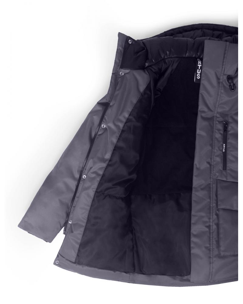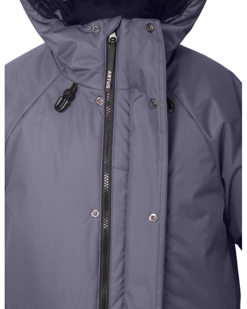 Рукава реглановые, одношовные, с трикотажными напульсниками, обеспечивающими тепло и комфорт. Воротник-капюшон двухшовный, втачной, с уступами, лицевая часть которого стягивается шнуром, протянутым через отверстия в шве втачивания, с фиксаторами и наконечниками для регулировки.