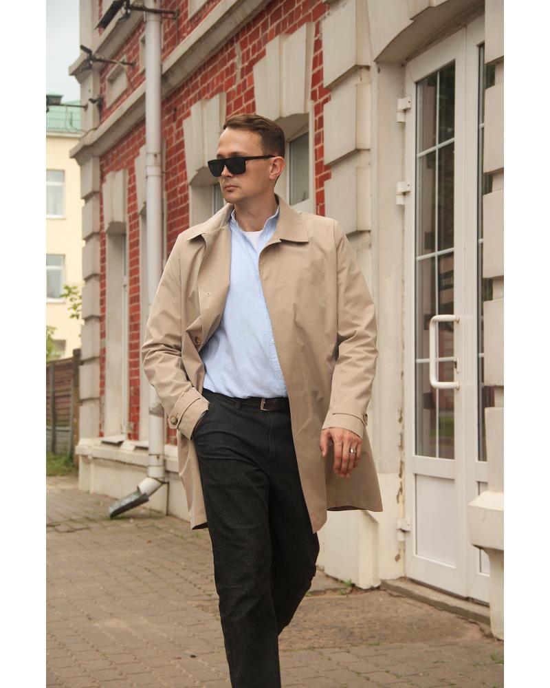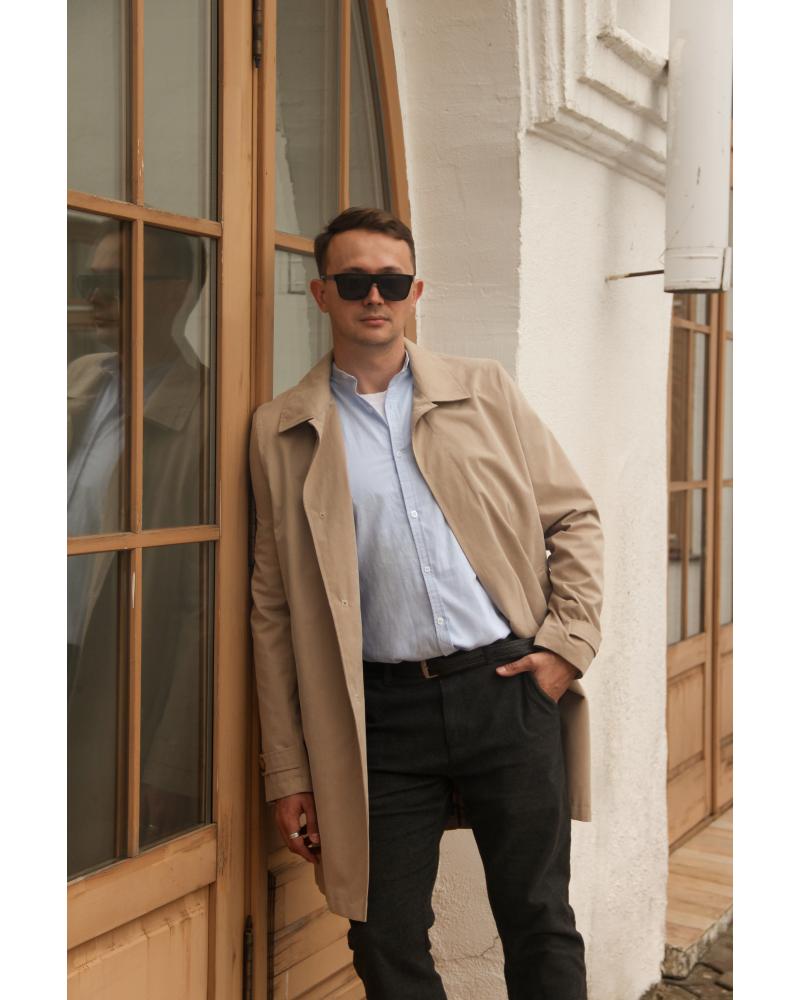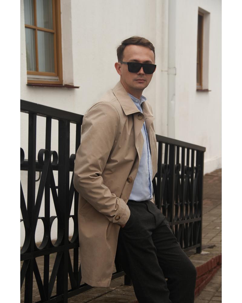 Особенности | Этот мужской плащ воплощает элегантность и утонченность в каждой детали. Центральная супатная застежка с тремя петлями и пуговицами, дополненная подпуговичниками и аккуратной сквозной петлёй вверху, создает изысканный образ и надежную защиту от непогоды. Концы застежки украшены специальными закрепками, подчеркивающими качество исполнения. Перед украшен карманами с настрочными листочками, застегивающимися на магниты, что обеспечивает комфорт и эстетическую завершенность. Обработка карманов с фигурной строчкой и закрепками по входам добавляет модели особый стиль и прочность. Вытачка на переде плавно переходит в карман, а цельнокроеный с бочками спинки силуэт подчеркивает стройность и гармонию линий. Спинка с рельефами и средним швом со шлицей создает эффектную деталировку и комфортную посадку. Втачные, двухшовные рукава с вставными паты, застегивающимися на одну петлю с пуговицей, обеспечивают свободу движений и аккуратность кроя. Низ рукава с подгибом завершает образ элегантным штрихом. Отложной воротник с притачной стойкой добавляет куртке классический стиль, а низ изделия с подгибом создает аккуратный и завершенный силуэт. В области оката внутри пройм расположены подокатники и плечевые накладки, что обеспечивает прочность и комфорт. На подкладке слева находится прорезной карман с обтачками и застежкой-молнией, а рукава подкладки — двухшовные, что гарантирует долговечность и высокое качество пошива. Эта куртка станет отличным выбором для тех, кто ценит стиль, детали и комфорт в повседневной и особенной обстановке. |
