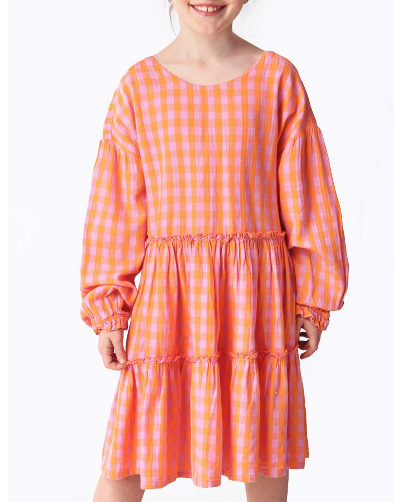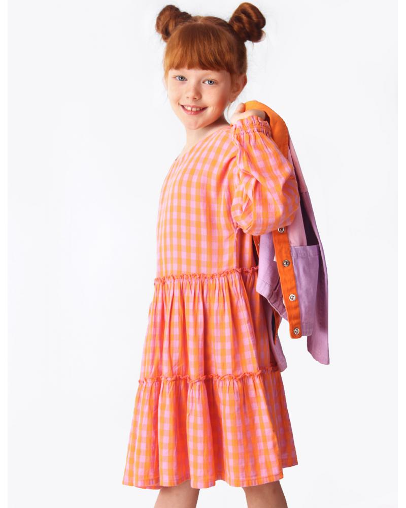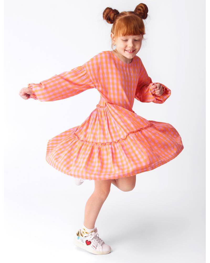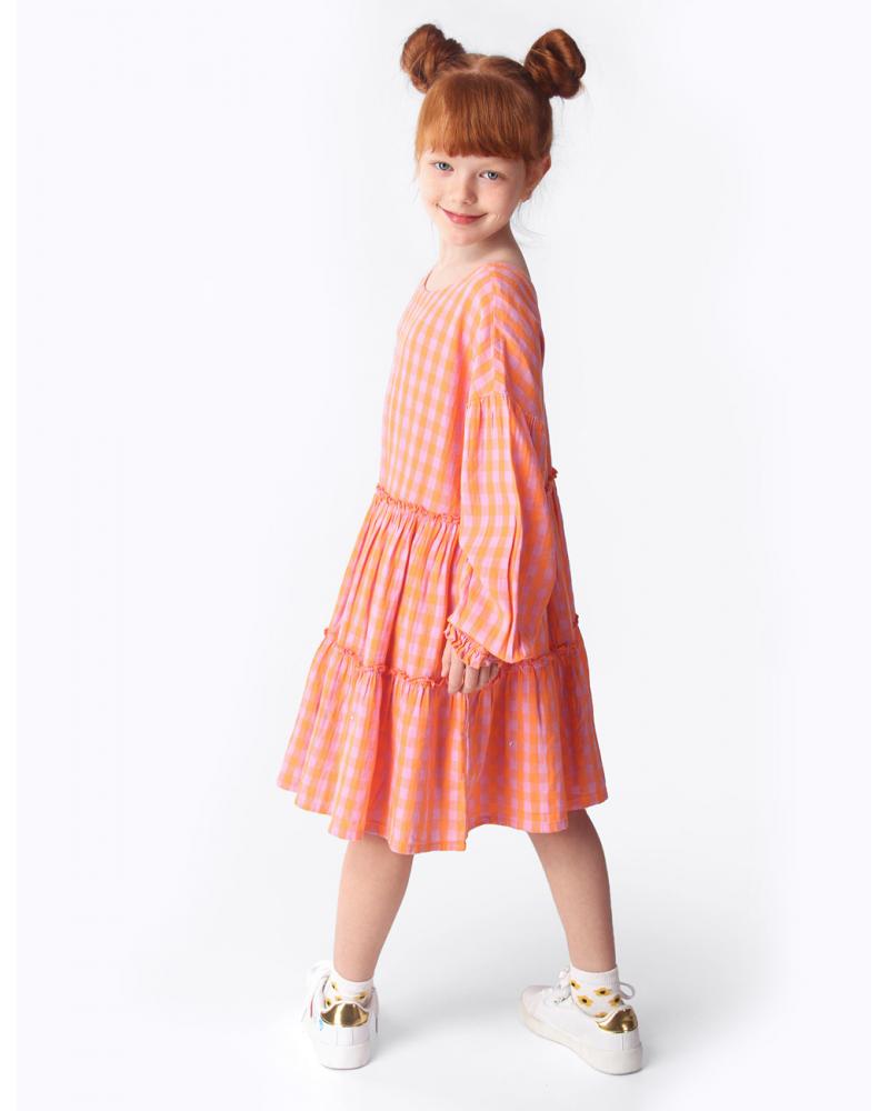 ОсобенностиПерсиковое платье от европейского бренда Coccodrillo – это базовый наряд, достойный маленькой принцессы. Платье силуэта «трапеция» соответствует моде на одежду свободного кроя. Оверсайз – это тренд последних лет. Поэтому платье миди из хлопка порадует детей, которым нравятся яркие, модные и удобные вещи. Длинные объемные рукава имеют спущенную линию плеч. А само дизайнерское воздушное платье имеет стильный вырез и добавит необычности и шарма образу. Красивый оранжево-сиреневый цвет и клетка придают оригинальности и необычности. Эффектное и оригинальное платье от Coccodrillo подойдет для любого мероприятия. Разноцветное демисезонное платье рассчитано на весну и лето. Но при хорошей погоде его можно надеть и осенним днем. Оно в одинаковой степени хорошо смотрится и как платье, и как туника. Текстильное платье от Coccodrillo приятно на ощупь и доставляет ребенку комфорт. Поэтому его можно носить как пляжное, домашнее или торжественное, на праздник или в школу. Как и любая одежда из хлопка, платье не сковывает движения и позволяет коже дышать. Платье с принтом смотрится пышно и нежно, оно не требует дополнительных аксессуаров.